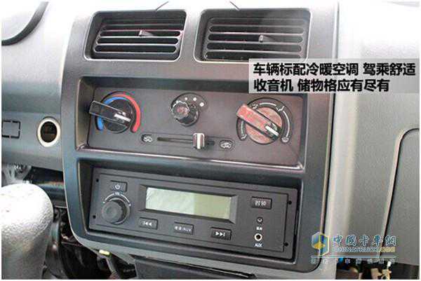 同时在中控台还设有空调出风口,标配冷暖空调,在炎夏和寒冬更舒适。收音机为驾乘人员提供愉悦心情。