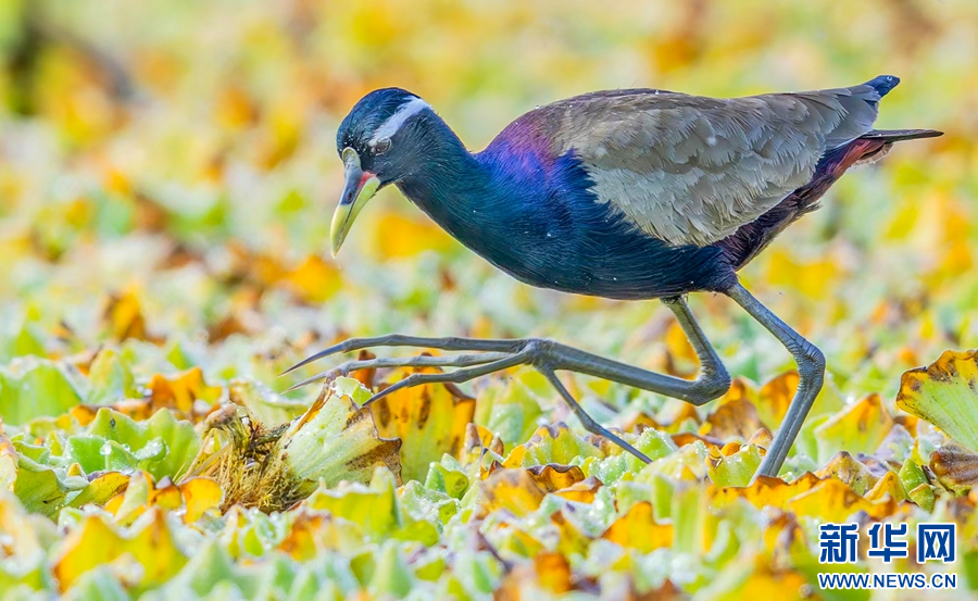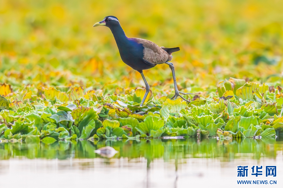 美丽的铜翅水雉(1月26日摄)。新华网发(杜银磊摄)