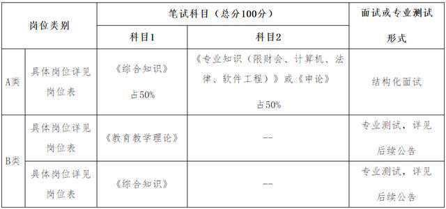 1、笔试工作由市人社部门统一组织,采取闭卷形式进行,考试科目根据岗位类别如下表: