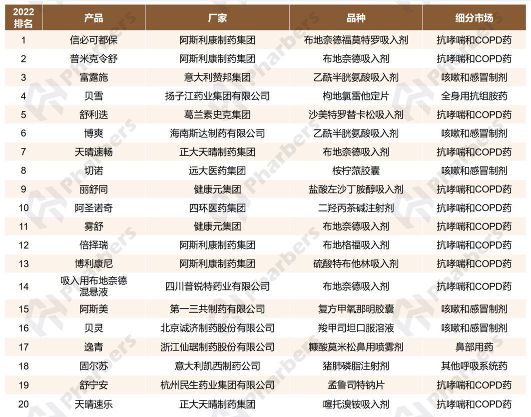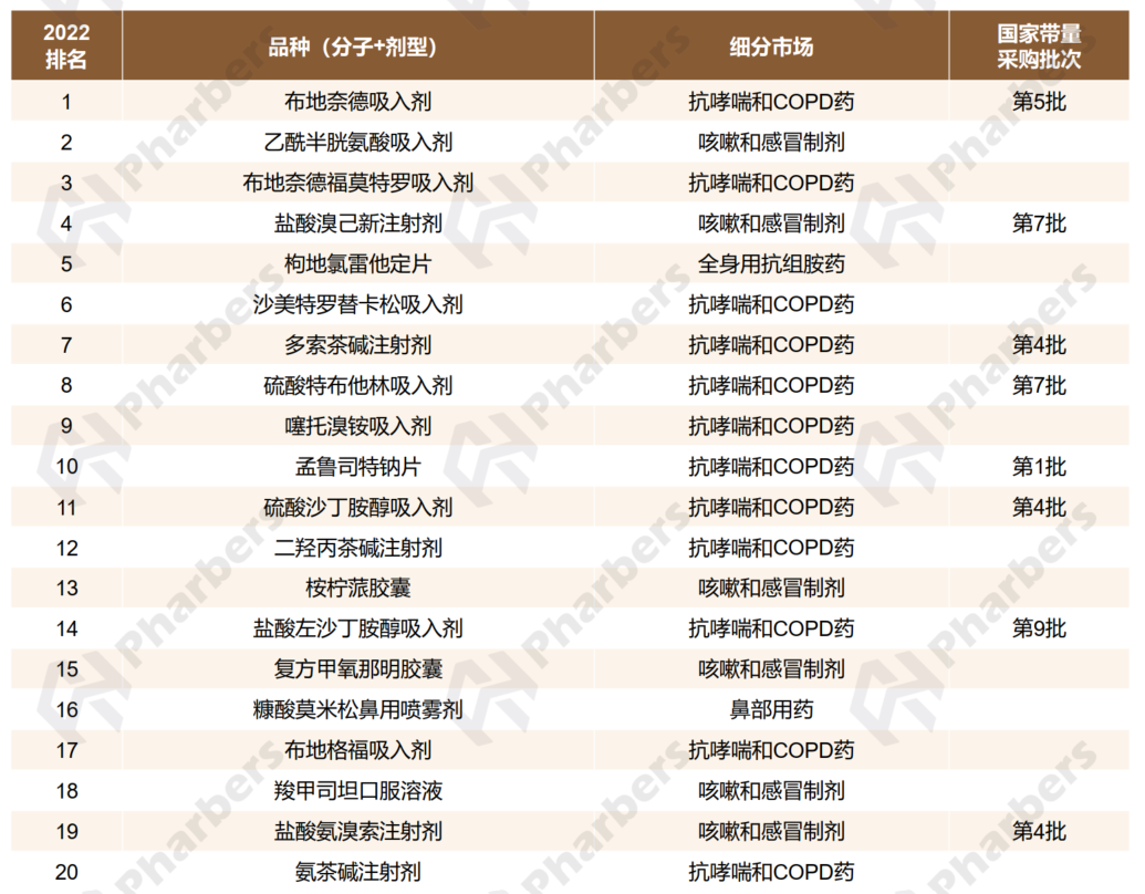TOP20品种:抗哮喘和COPD药“霸榜”