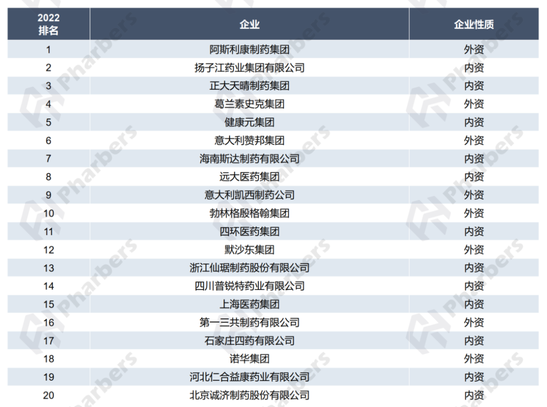 上榜TOP20的内资企业中,扬子江药业集团、正大天晴制药和健康元集团进入前五,且健康元集团增长强劲,2022年同比增长达129.8%。此外,四川普锐特药业和河北仁合益康药业的增幅也超过100%。