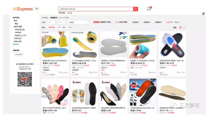 我们在用关键词“Deodorantshoepad”去其他平台搜索一下产品,比如速卖通等: