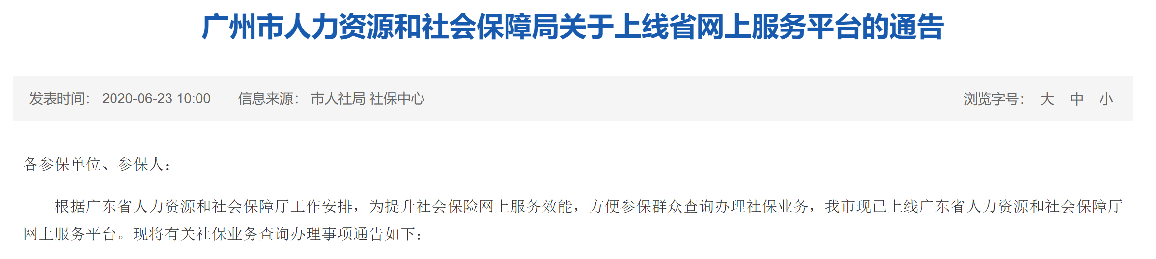 6月23日,记者从广州市人社局了解到,广州市社会保险信息系统现已上线广东省人力资源和社会保障厅网上服务平台。上线后,原广州市人力资源和社会保障局的门户网站将暂停城镇职工养老保险、失业保险及工伤保险业务......