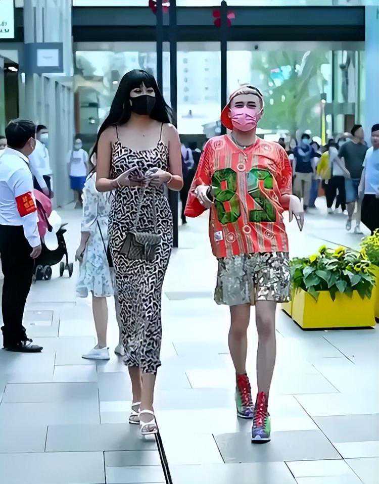 “粉色吊带喇叭裤,头顶鲜艳发型酷”的男士,完美诠释了什么叫做长得像tony老师的“男女人”,还真是时尚男女不分。