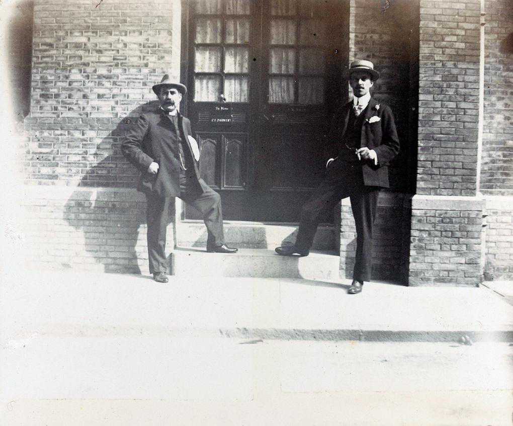 1900年,上海两位牧师在房门外合影。