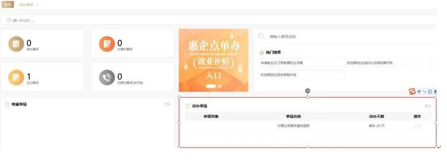 “待办事项”栏目呈现具体办事事项为需要单位及时进行操作的业务,如:根据补正通知书对相关业务进行材料的补正等。