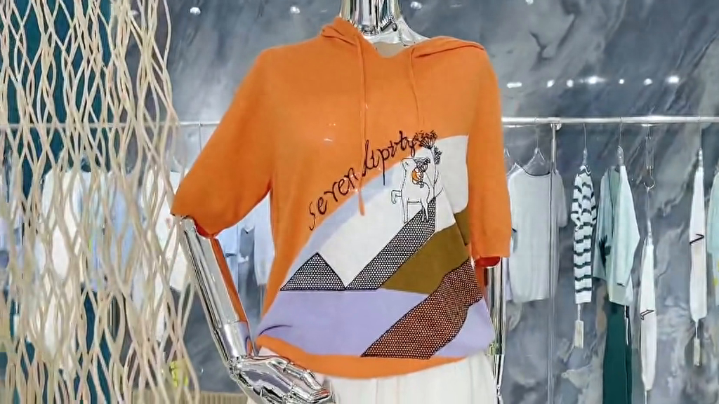 像他们家的货品上面的印花全部是做的刺绣的工艺,每一件都是这样的刺绣加贴布的工艺,所以机洗也是完全不会去变形的,因为很多机器打印的印花可能多洗几次都会掉,上面所有的印花、贴布、刺绣洗多少次都不是会掉的,而且整个的手感非常好。