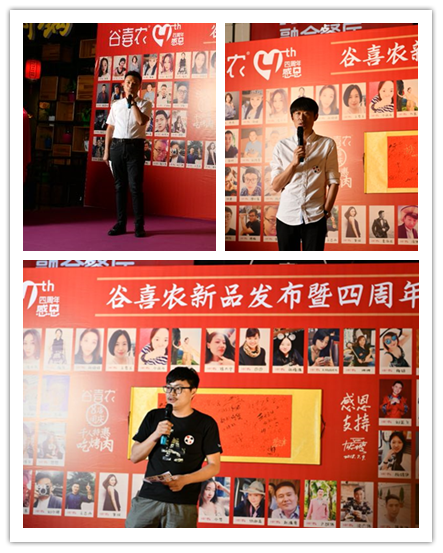谷喜农创始人沈爱坡连续用五个“感恩”表达了自己对嘉宾、顾客、员工、合作伙伴、股东的感谢。餐饮竞争日趋激烈,谷喜农四年走来步履维艰,正是这些人的帮助和支持才有了谷喜农的今天。随后沈总隆重介绍了今天活动的四位主角: