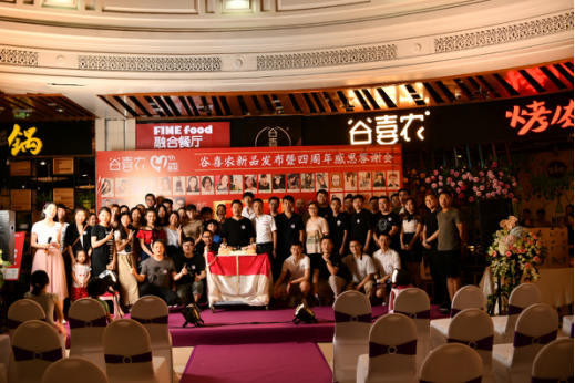 各路餐饮大咖、媒体记者、美食大咖齐聚一堂,在品尝新品美食的同时,为谷喜农唱响4岁生日歌。