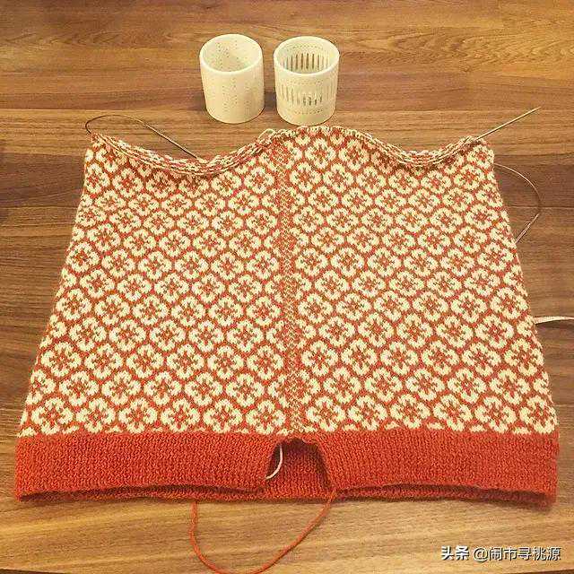 从上面图中可以看出,毛衣肩部处理有所不同,个人认为只要按这个思路,可以把这款提花运用到我们用过的毛衣结构中,不一定拘泥于这种形式,由于时间和水平有限,恕不能提供毛衣的图解翻译,下面将几张织友过程图片放上供大家参考!