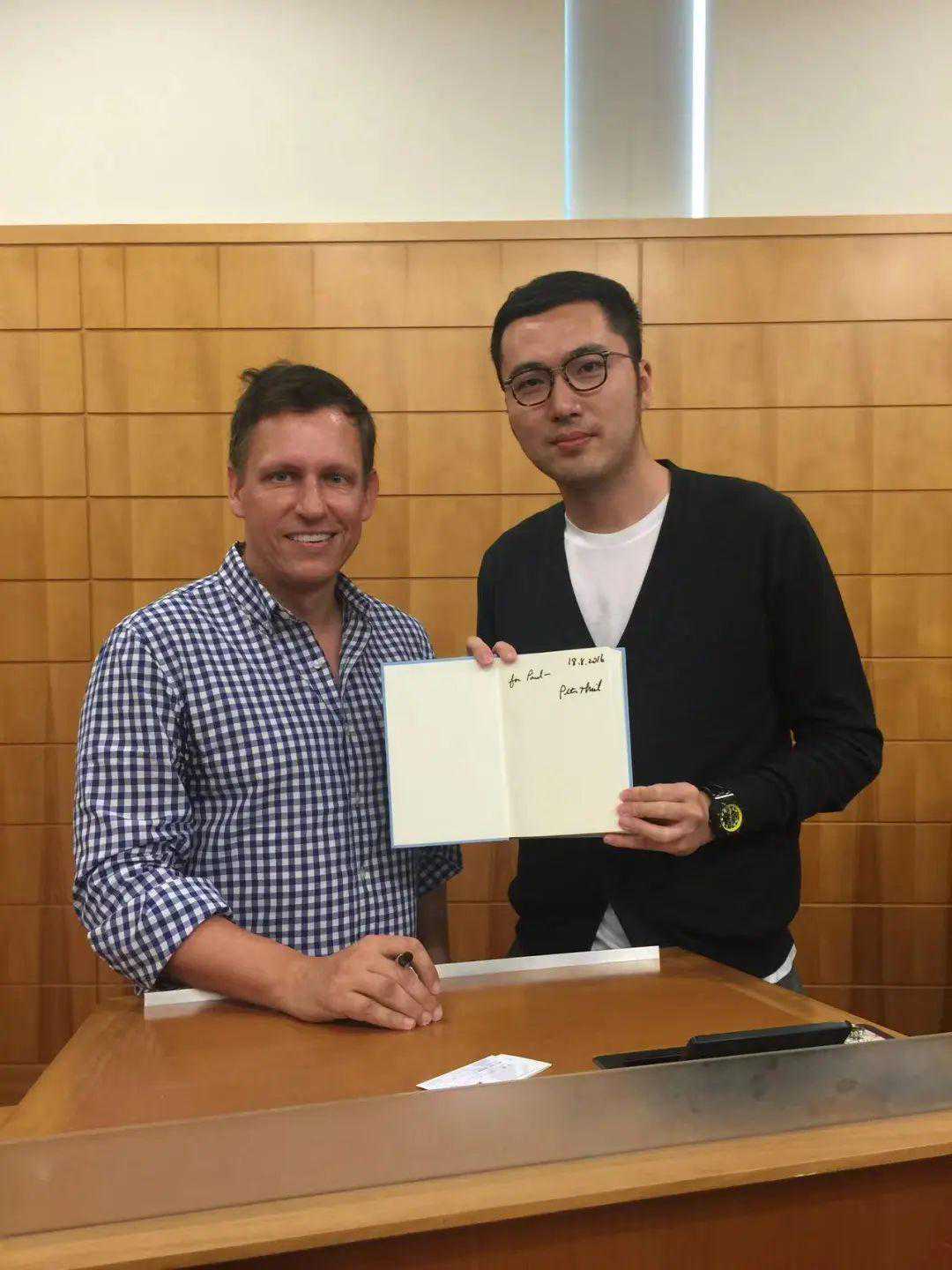 孙梦飞在参加斯坦福大学访问学者项目时同PayPal创始人PeterThiel合影