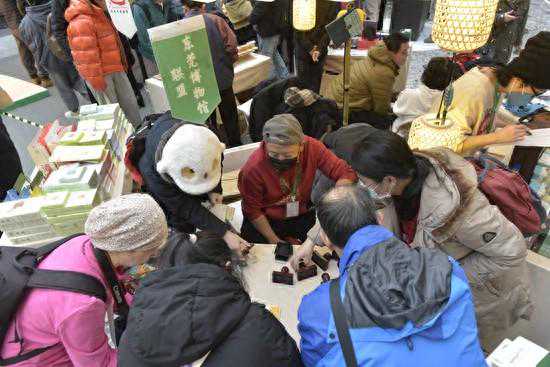 2023年12月,集章爱好者在“最中国·文博市集”活动现场盖章。活动方供图